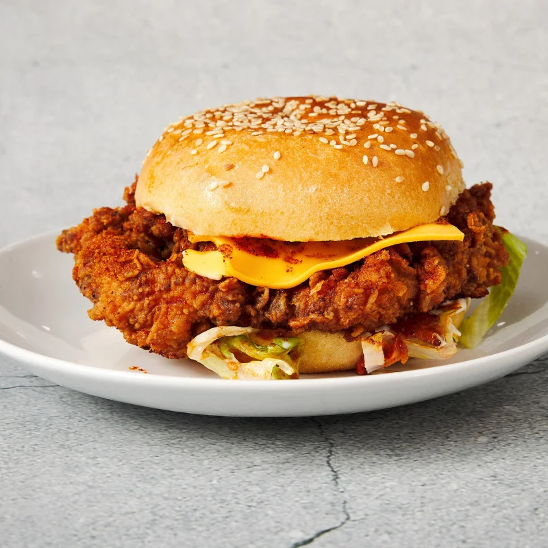 🍔 Chicken Fillet: Crispy fillet dipped in our signature house spicy sauce.